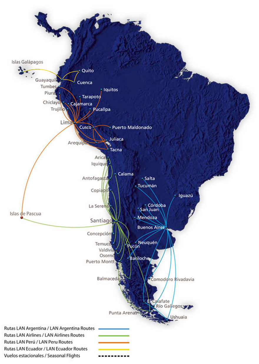 За счет большой протяженности страны внутри Чили между основными туристскими регионами хорошо развиты внутренние авиаперелеты. Они осуществляются чилийской авиакомпанией LAN, которая является одним из лидирующих авиаперевозчиков во всей Южной Америке, а также еще одной местной бюджетной а/к - Sky Airlines и авиакомпанией Principal Airlines (PAL).